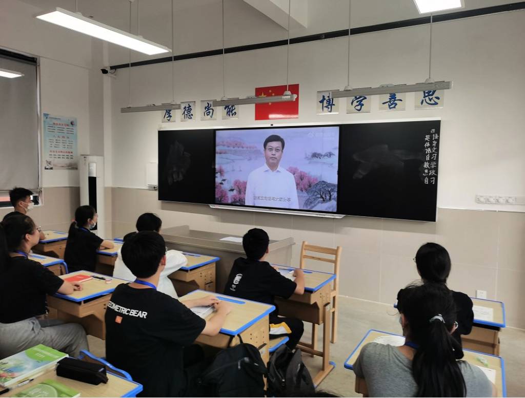 同学们还收看了苏州市委书记曹路宝向全市中小学生发表的新学期寄语,激情满怀的观看了苏州市拍摄《开学第一课——与先贤对话,启迪心灵之光》。从苏州走出的院士们。也在现场给苏州广大青少年提出殷切希望。