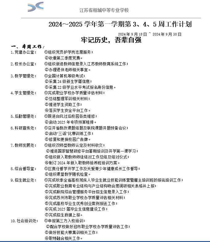 2024~2025学年第一学期第3、4、5周工作计划.docx