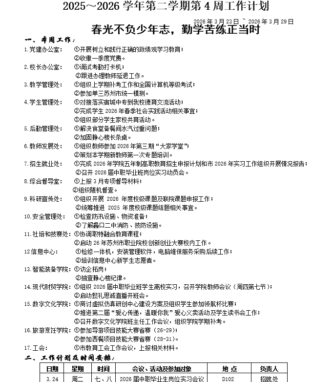 2025~2026学年第二学期第4周工作计划