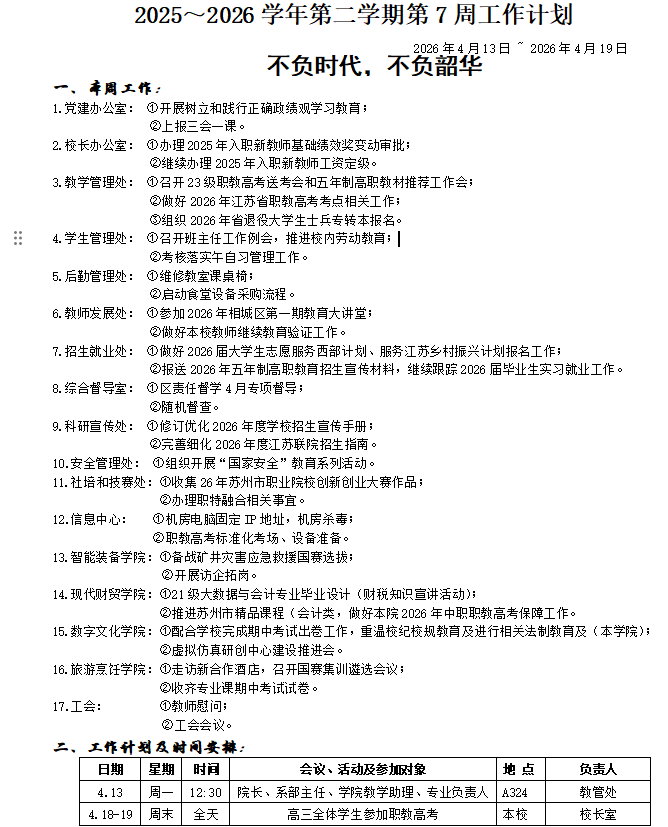 2025~2026学年第二学期第7周工作计划