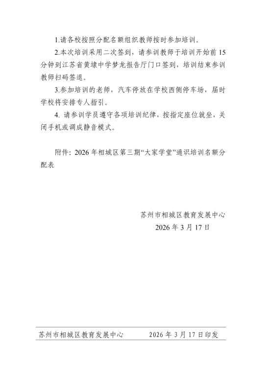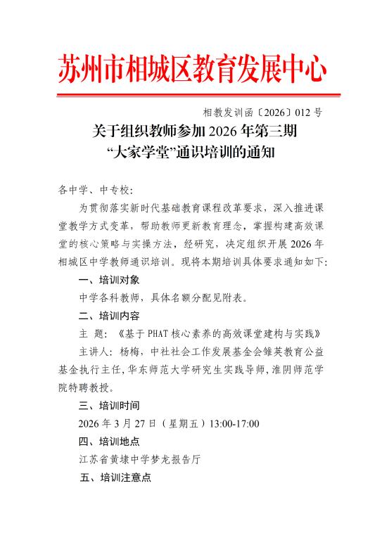 关于组织教师参加2026年第三期“大家学堂”通识培训的通知
